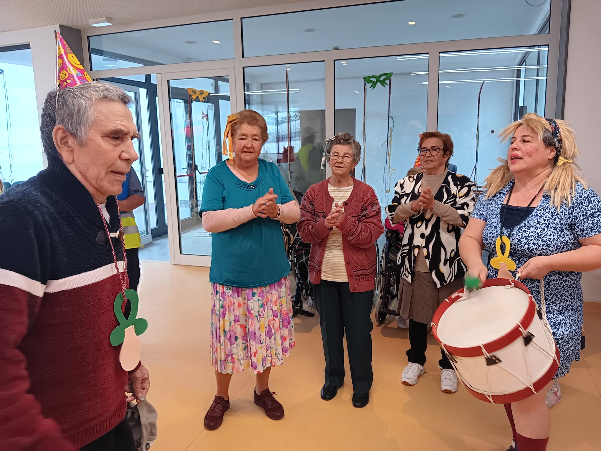 Foi uma tarde de folia, que terminou com um lanche, onde não faltaram as tradicionais malassadas (que foram adaptadas a cada utente).