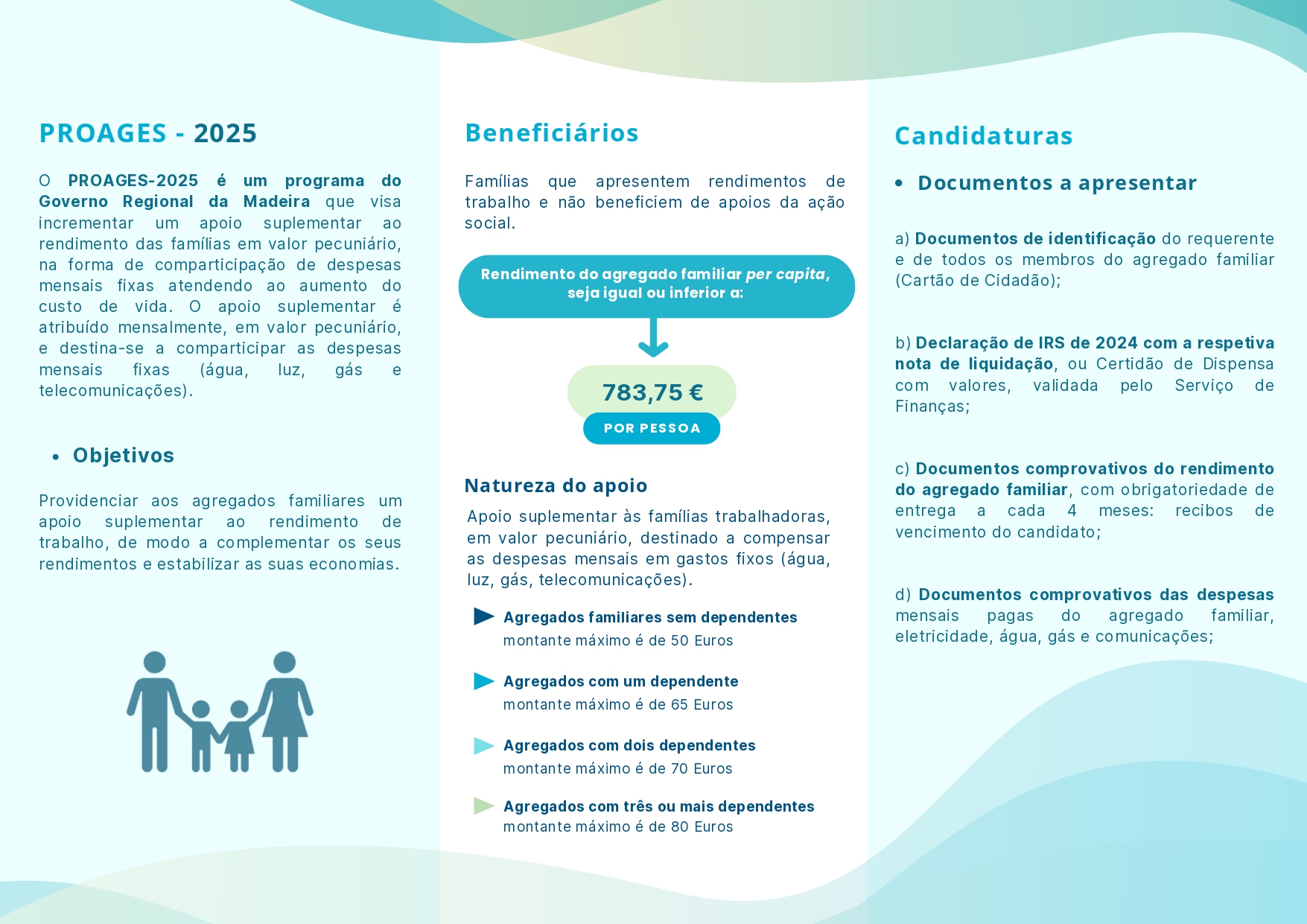 São beneficiários do PROAGES 2025, os agregados familiares com residência no concelho da Calheta que reúnam, cumulativamente, as seguintes condições: