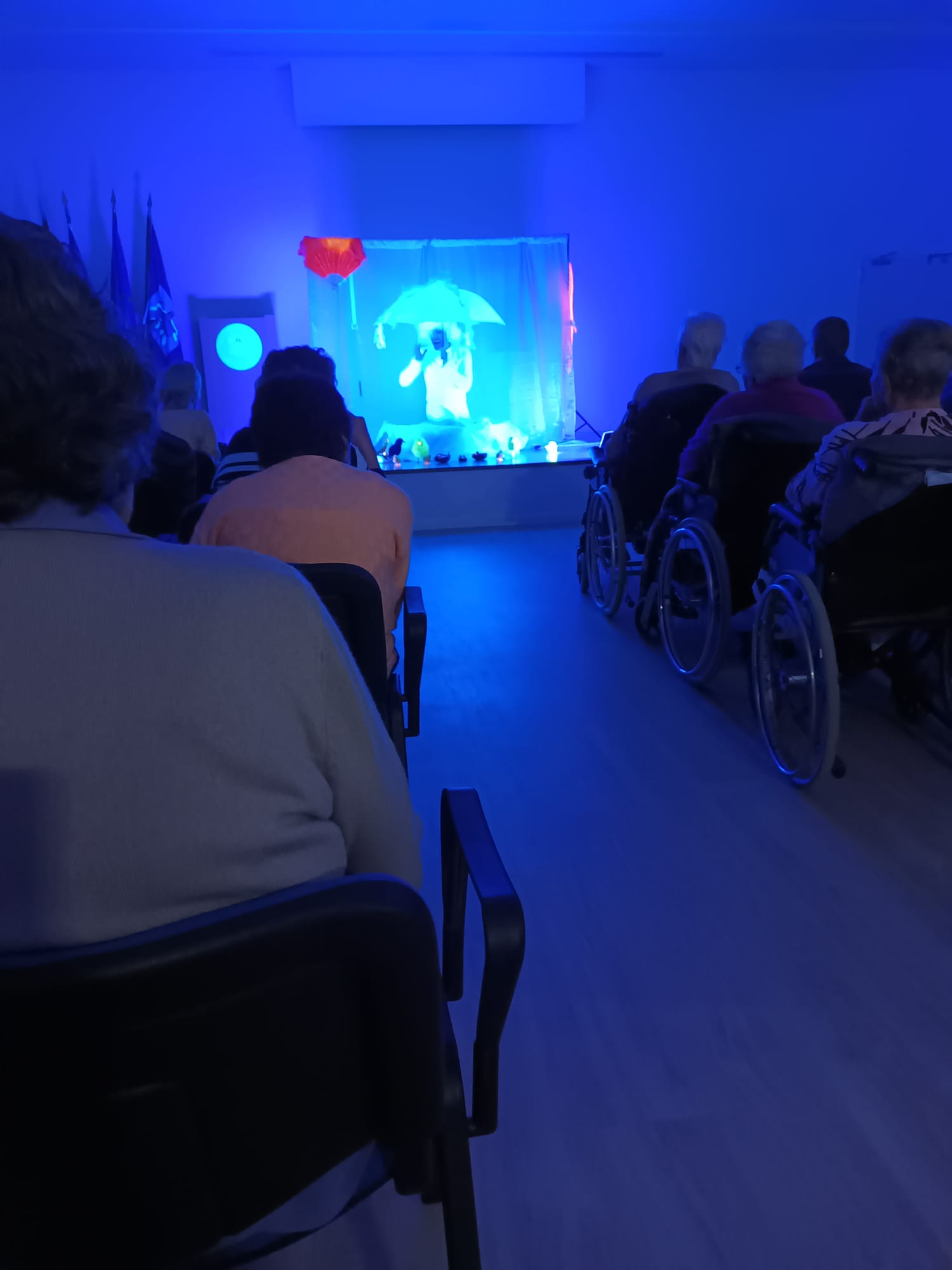 Alguns utentes do Centro de Convívio e das ERPI’s (Lares) assistiram, na passada sexta-feira, à peça de teatro sensorial apresentada pelo grupo de animação Lanterna Mágica.